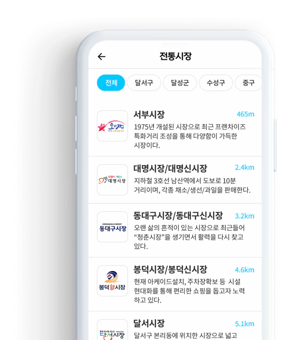전통시장에 직접 가지 않고 앱으로 주문하고, 신선하고 맛있는 식재료들을 대구로 앱에서 직접 주문할 수 있습니다.