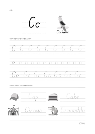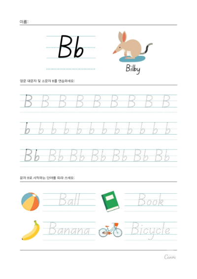 알파벳 또는 단어와 문장을 반복해서 쓰면 영어 쓰기 체계에 익숙해질 수 있고, 무의식적으로 머리에 각인이 잘 될 수 있습니다.