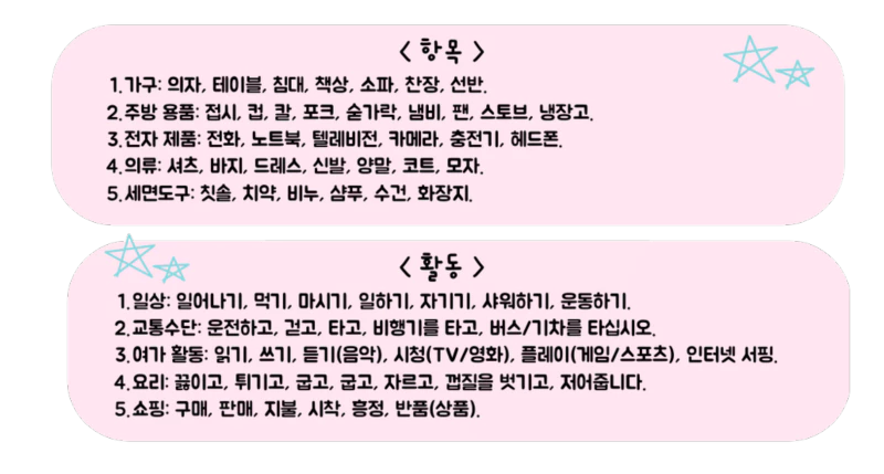 그림이 있는 플래시 카드는 효과적인 학습 도구가 될 수 있습니다. 이미지를 영어 단어와 연관시킬 수 있어 기억하는 데 도움이 됩니다.