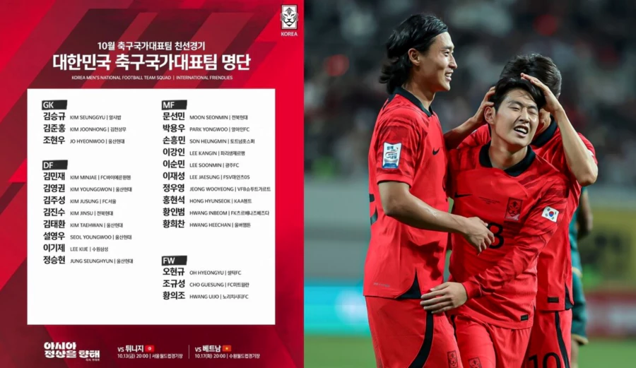 | GK | 김승규(알샤밥), 조현우(울산), 김준홍(김천) |